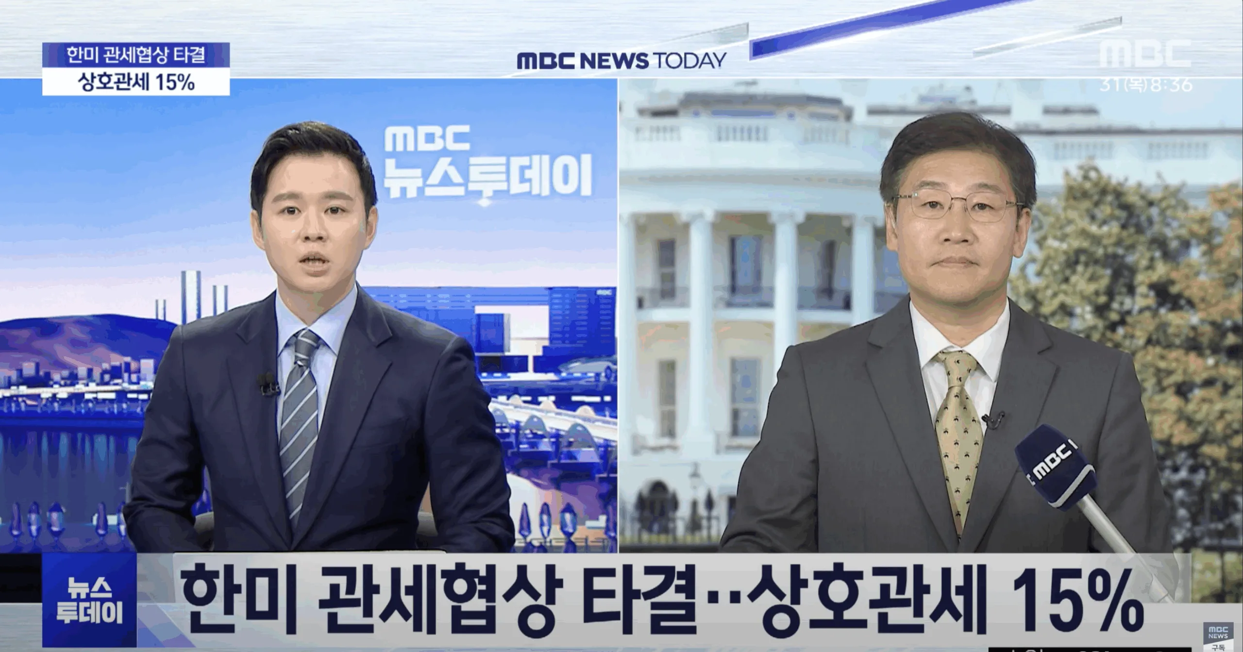 - MBC 『뉴스투데이』, “한미 관세협상 타결‥상호관세 15%” 뉴닉+13MBC NEWS+13세상을 바꾸는 시민언론 민들레+13